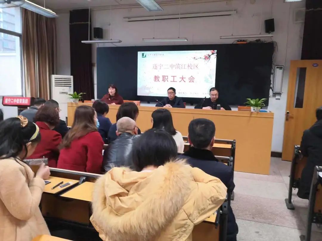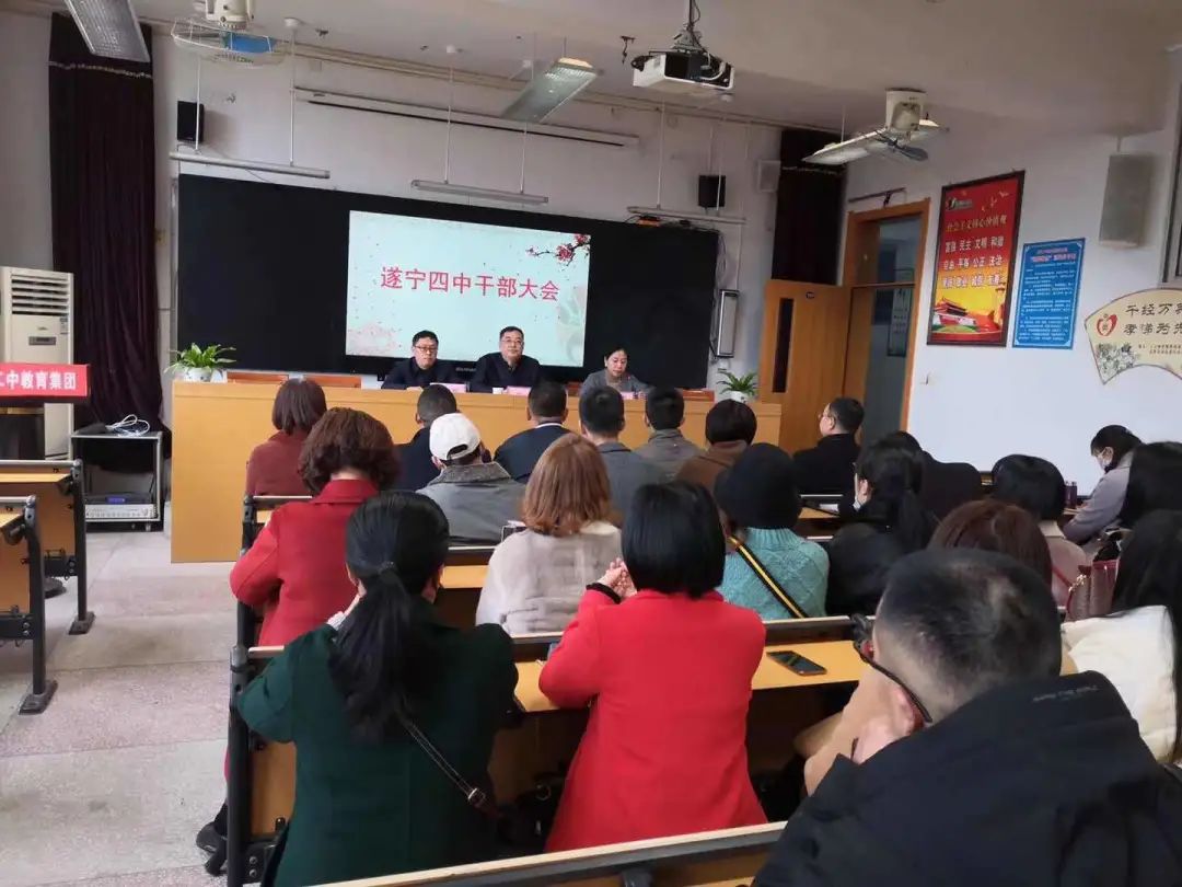 2021年2月26日下午。市委教育工委副书记、市教育体育局党组成员陈杰同志一行到我校组织召开了干部大会,会上宣布了新的领导班子任命文件,任命原遂宁二中教育集团本部副校长王代彬同志为遂宁四中(二中滨江校区)校长,同时兼任遂宁二中副校长。