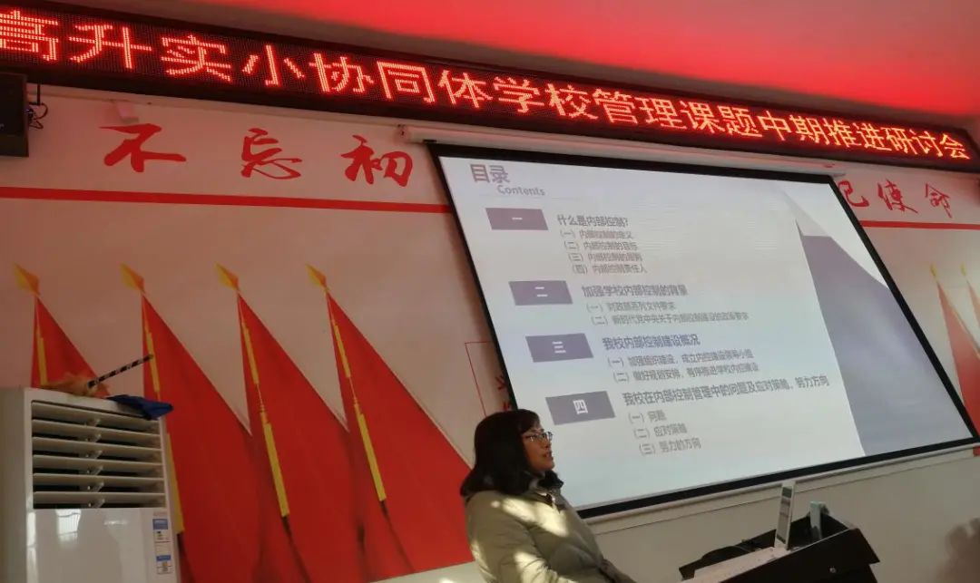 遂宁市高升实验小学的唐霞主任带来的管理案例---《浅谈高升实小内控管理》,她从“内部控制”的定义、内部控制的背景、政策、策略和她们特有的“内控手册”及软件,向我们诠释了新一代财政管理的高科技技术,让大家叹为观止!