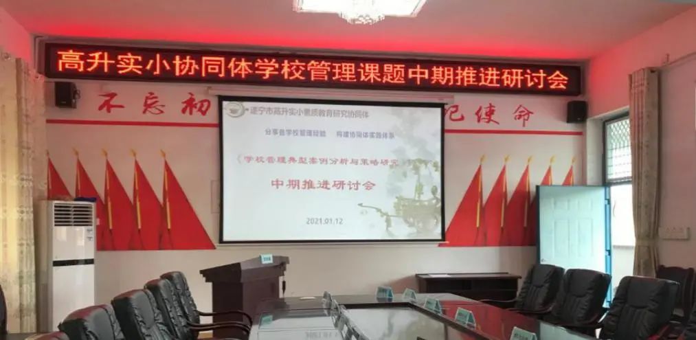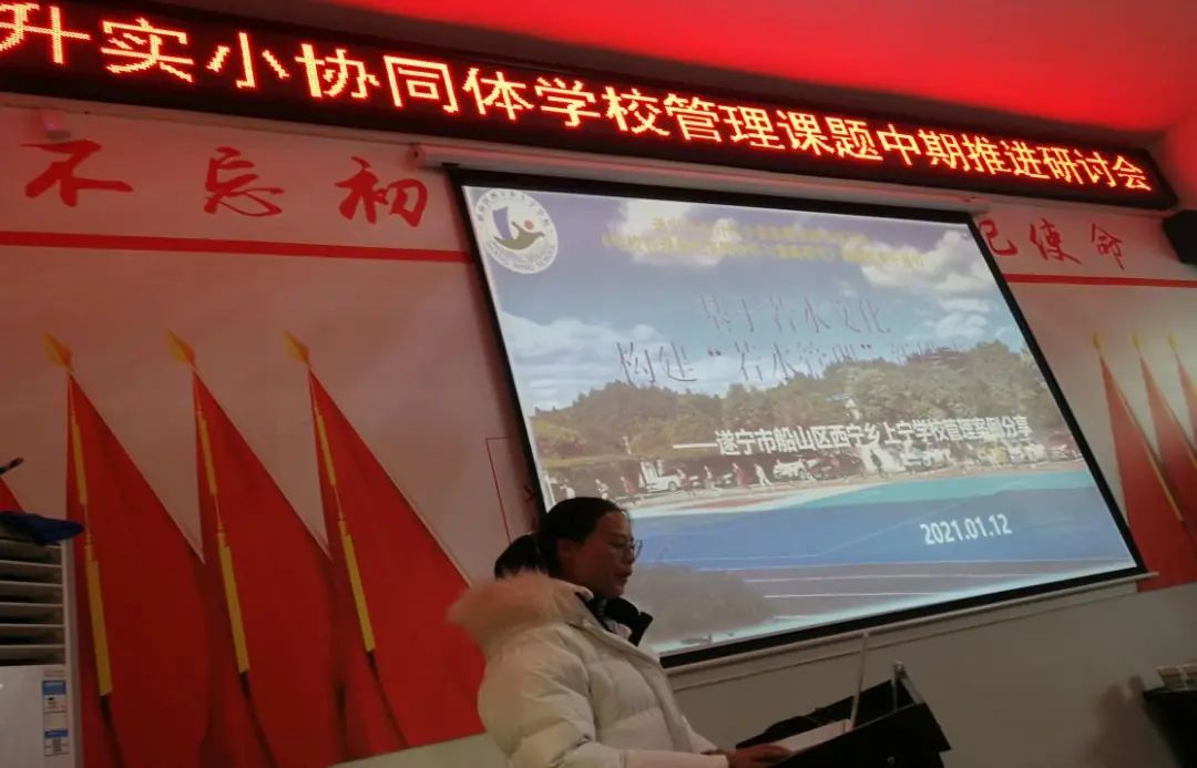 1月12日下午,遂宁二中滨江校区课题组的教师在校长潘明英、副校长罗艳梅的带领下,参加了遂宁市高升实小素质教育协同体专项课题《学校管理典型案例分析与策略研究》的中期推进研讨会,与十多所学校共同探索学校管理经典案例与策略。