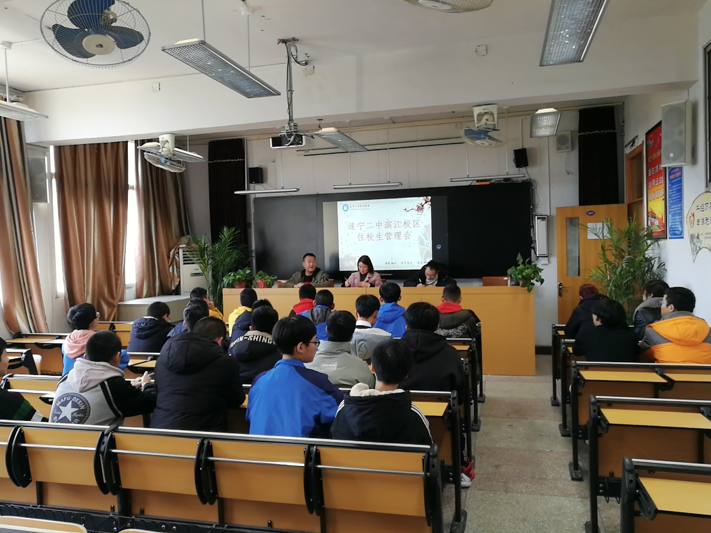 进入冬季,也是本期最后阶段,为确保校园平安,按照学校常规工作安排,2019年12月10日上午学校保卫科尤艇科长组织全体宿管人员对后期住校生安全管理进行培训。会上对前期出现的问题进行了总结分析,对后期的安全管理进行了强调。2019年12月10日下午召开了男生寝室室长会议,各年级主管及罗校长对室长提出了要求,管理的方式方法做了培训,充分的调动了学生的积极性。