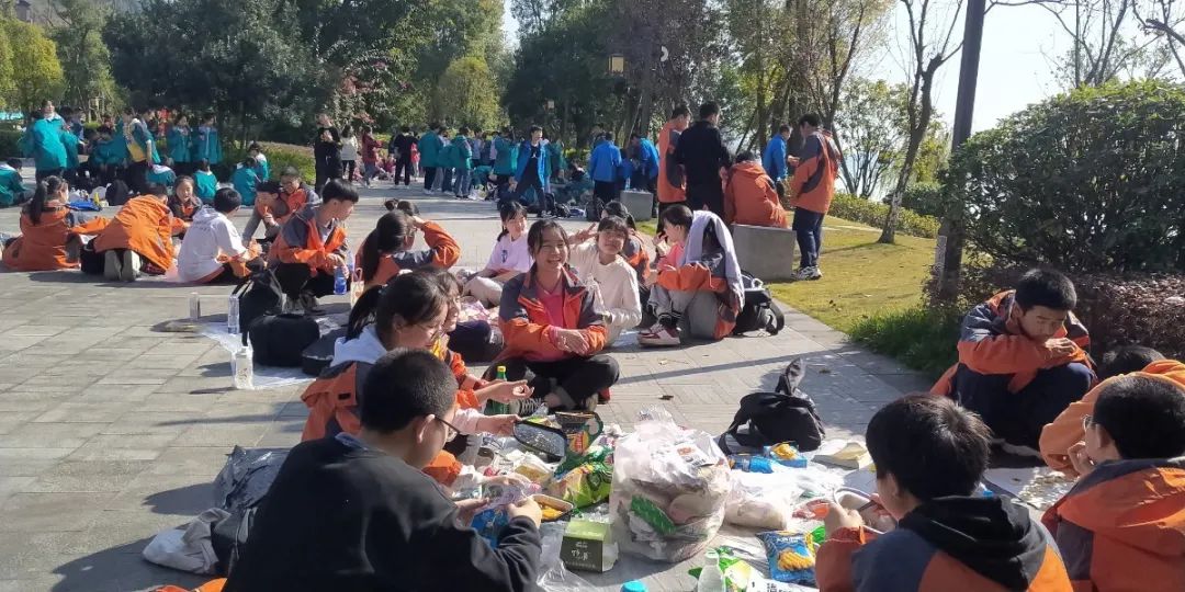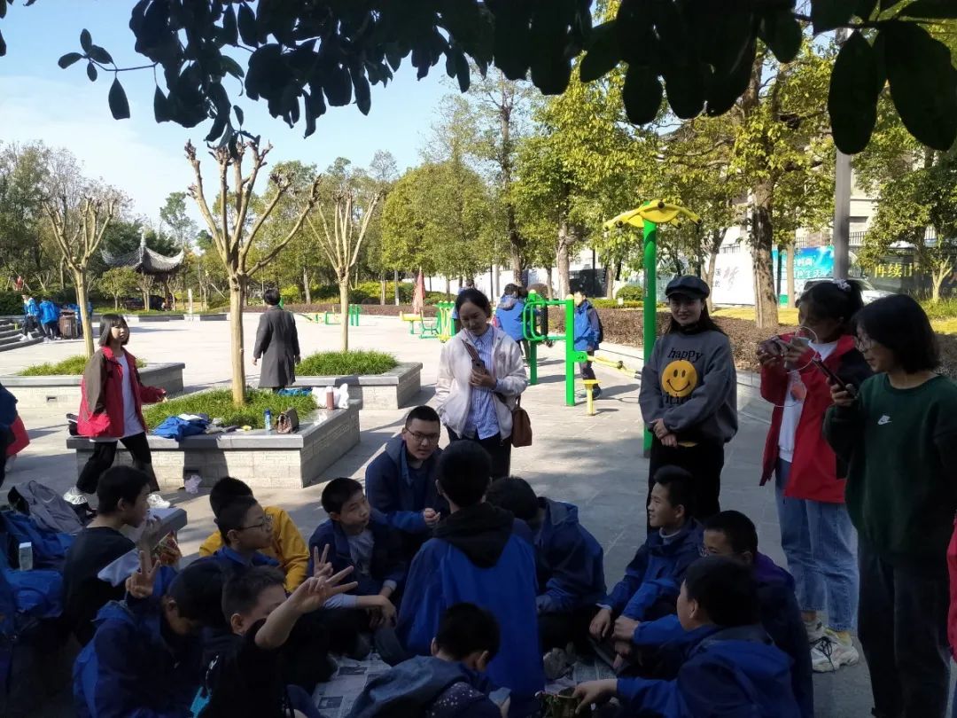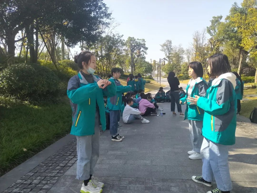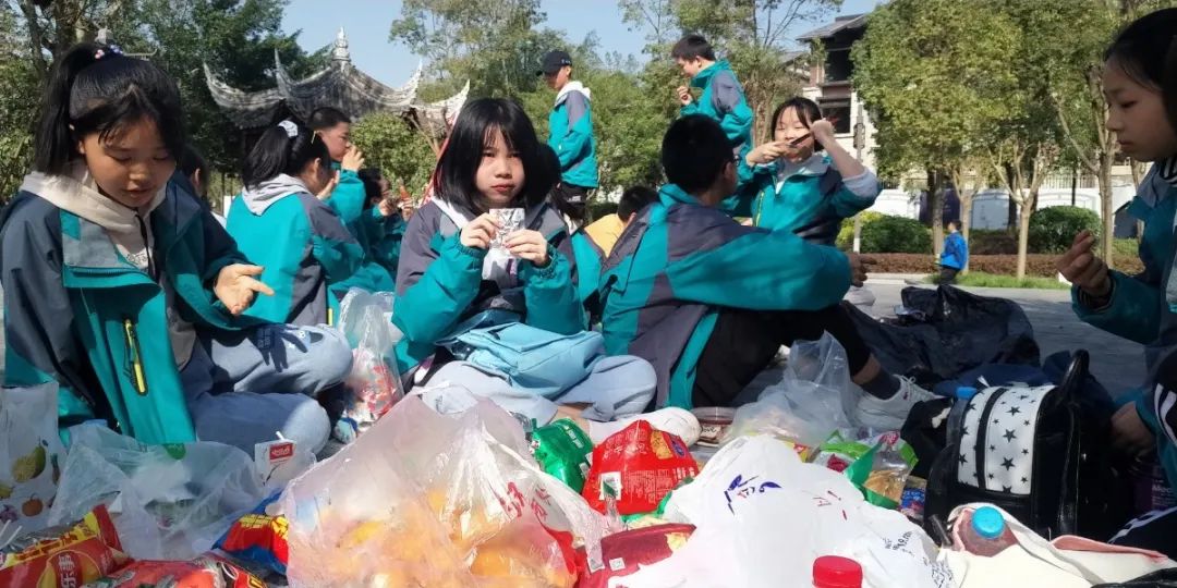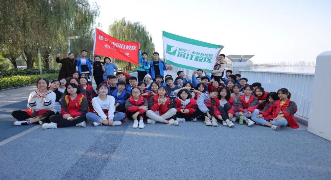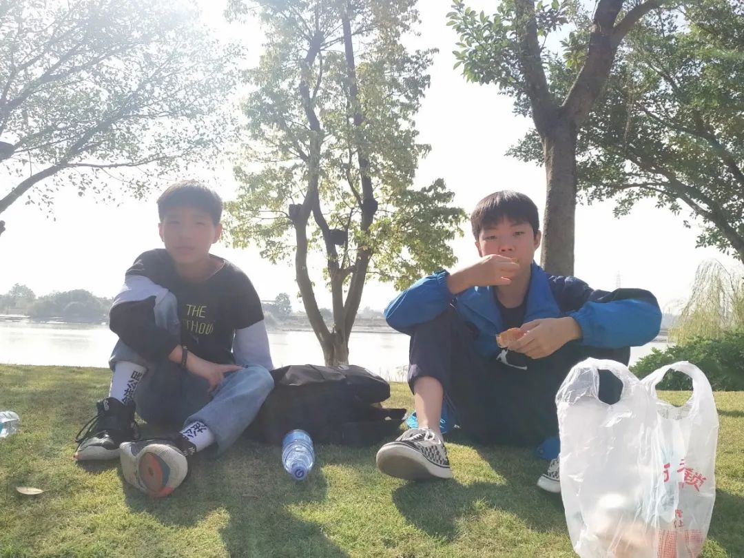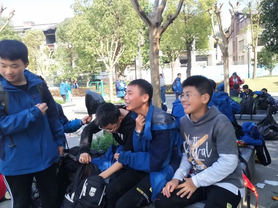 当天下午,滨江校区的操场上,艳阳高照、红旗飘飘、笑脸飞扬,初三的孩子们身着统一的校服,等待着期待已久的“亲近自然,挑战自我”远足拉练活动。