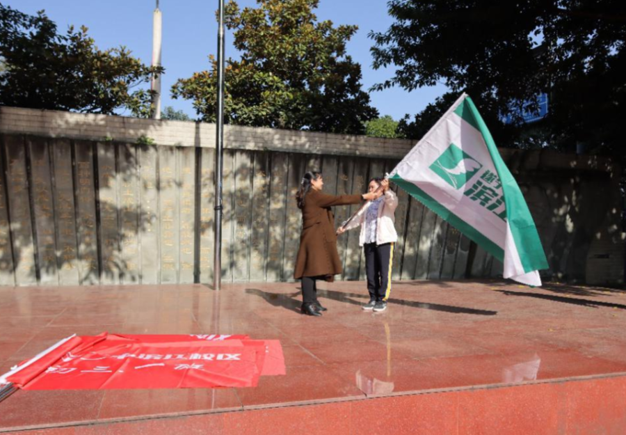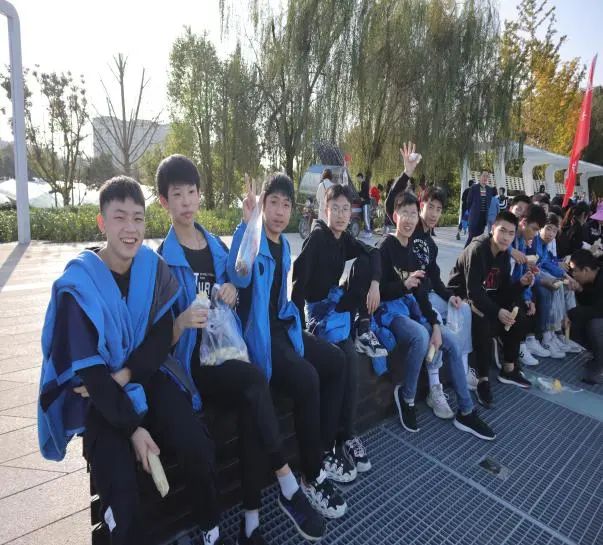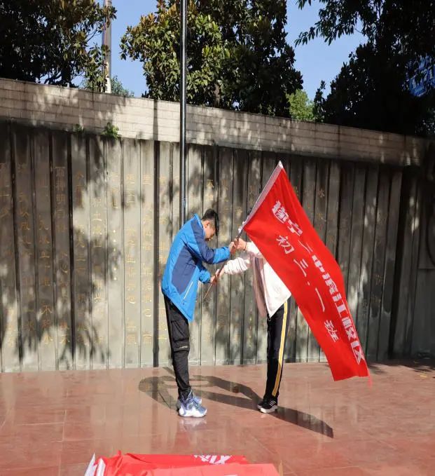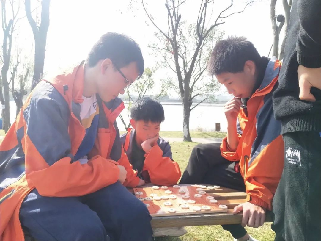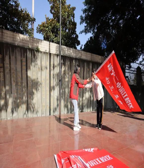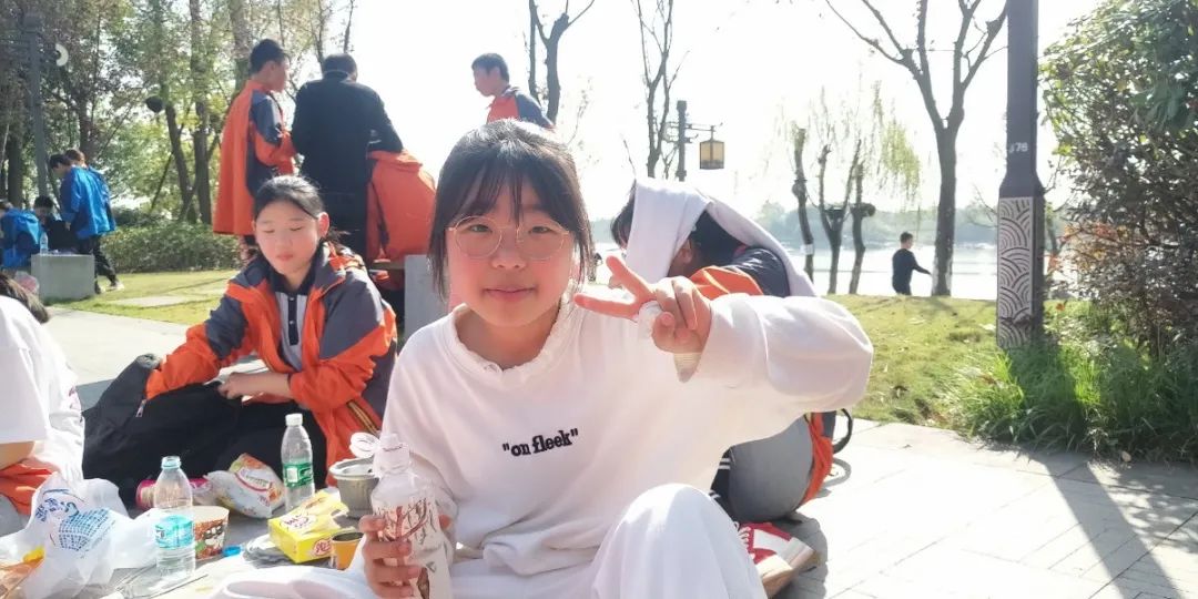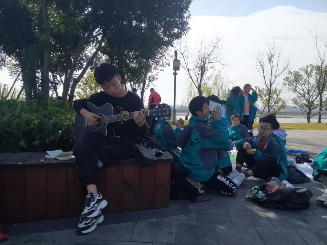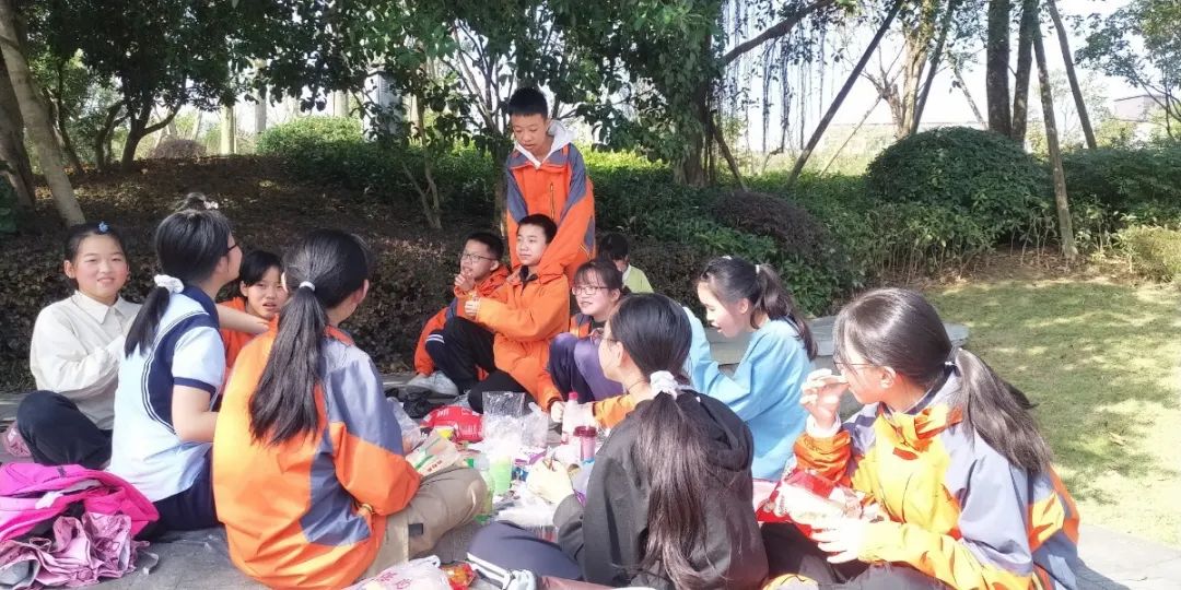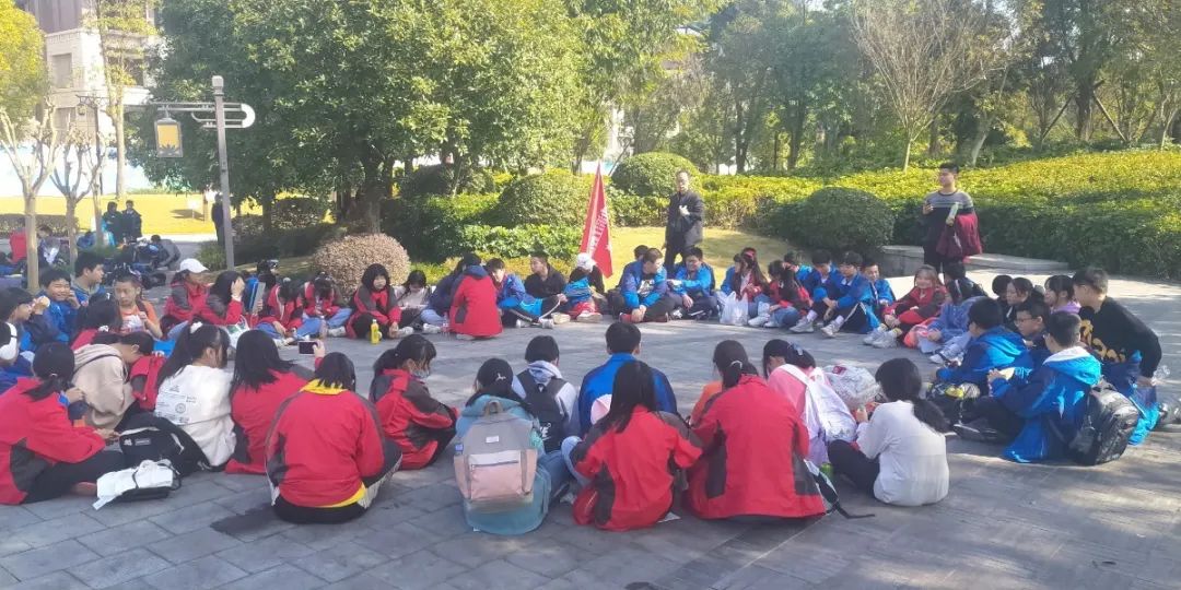 当天下午,滨江校区的操场上,艳阳高照、红旗飘飘、笑脸飞扬,初三的孩子们身着统一的校服,等待着期待已久的“亲近自然,挑战自我”远足拉练活动。
