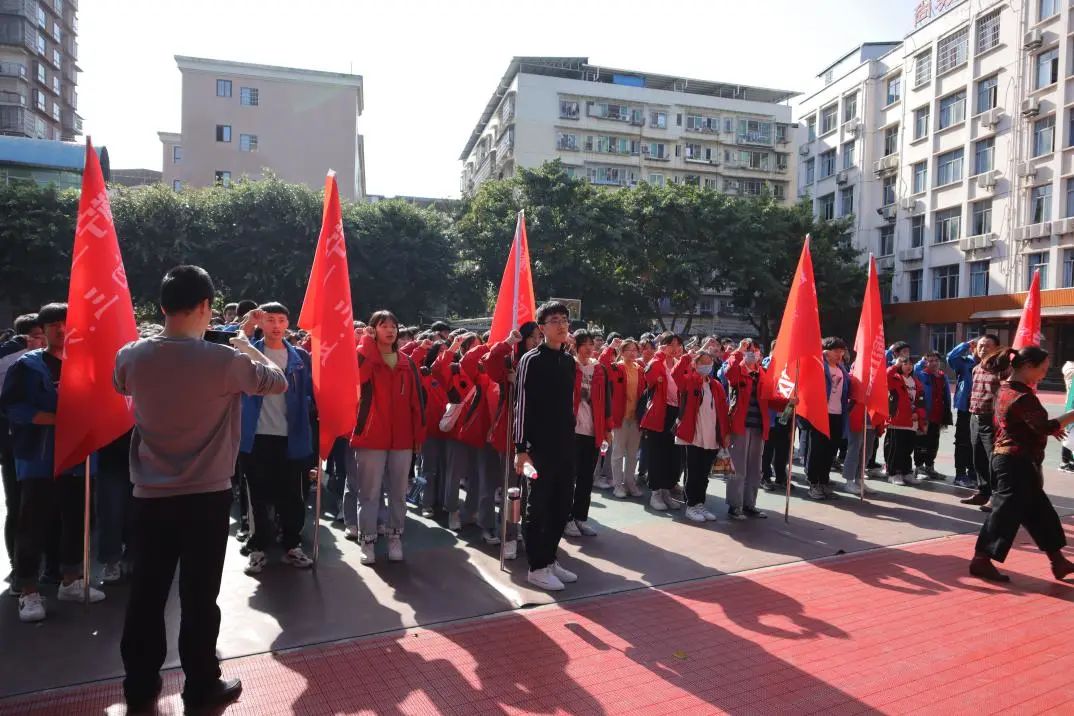 14:20整队集合,校长潘明英亲自为年级组长和7个班级的班长授旗,鼓励孩子们参加有氧运动,挑战自我,希望同学们不畏艰难,用脚步去丈量生命的精彩!分管领导、副校长肖待春作动员讲话:“‘身体是革命的本钱!只有优秀的成绩已经不能胜任日益激烈的竞争,还要我们拥有健康的体魄、坚强的意志!。”随后,年级主管主任王燕琼对活动提要求、学生代表何彩馨宣誓、体育老师为孩子们加油。