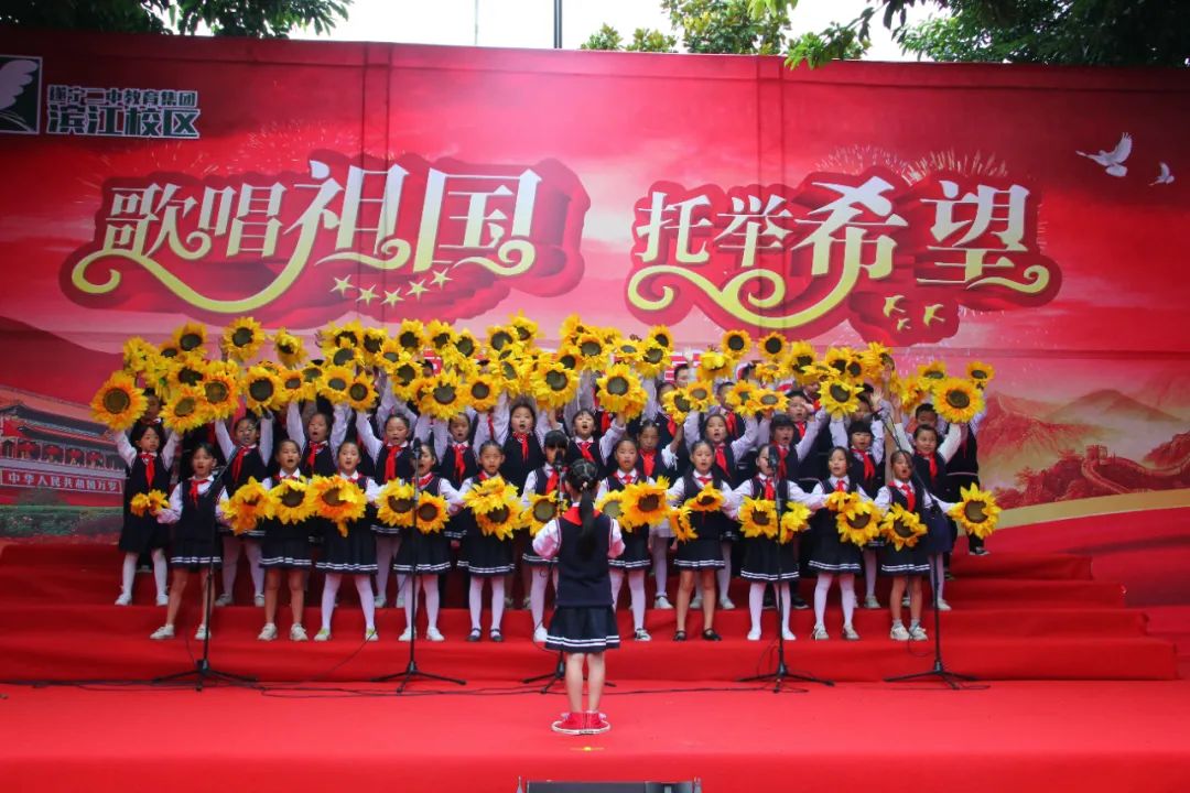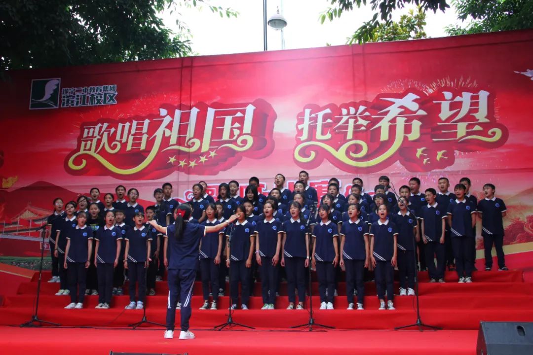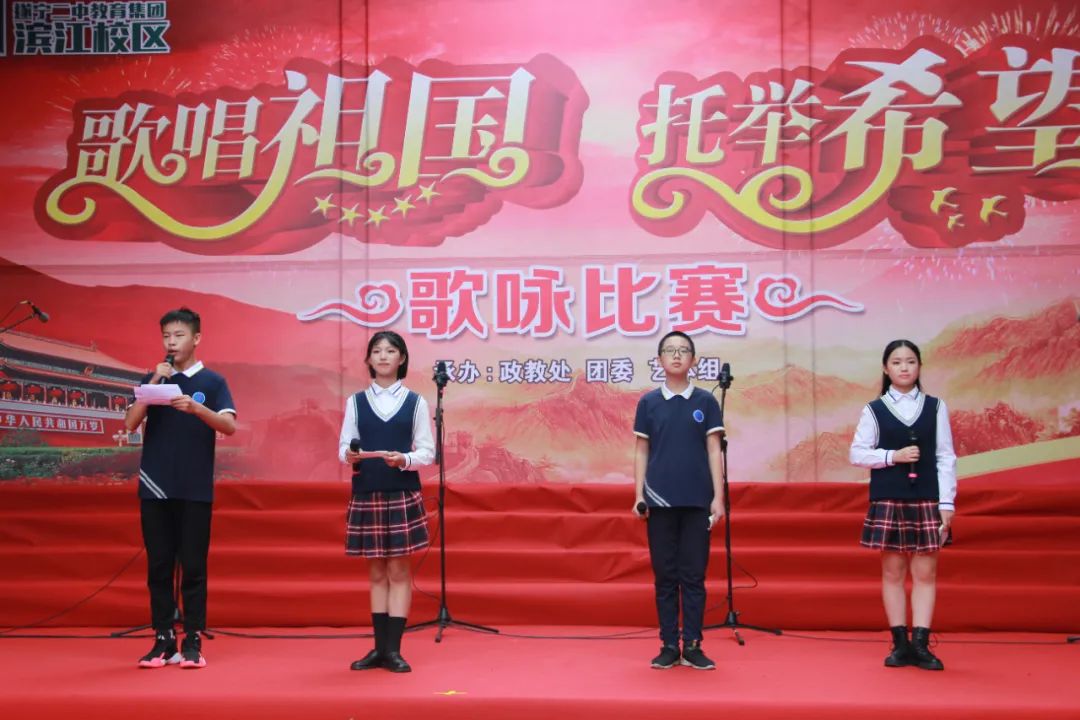 为展示艺术教育成果,深入推进特色学校建设,进一步增强同学们集体荣誉感,班级凝聚力,丰富校园文化生活,陶冶同学们的情操,激发同学们爱党、爱国、爱人民、爱生活、爱学校、爱父母、爱同学的热情,9月27日下午,遂宁二中教育集团滨江校区2020年“歌唱祖国.托举希望"歌咏比赛在校区操场举行。