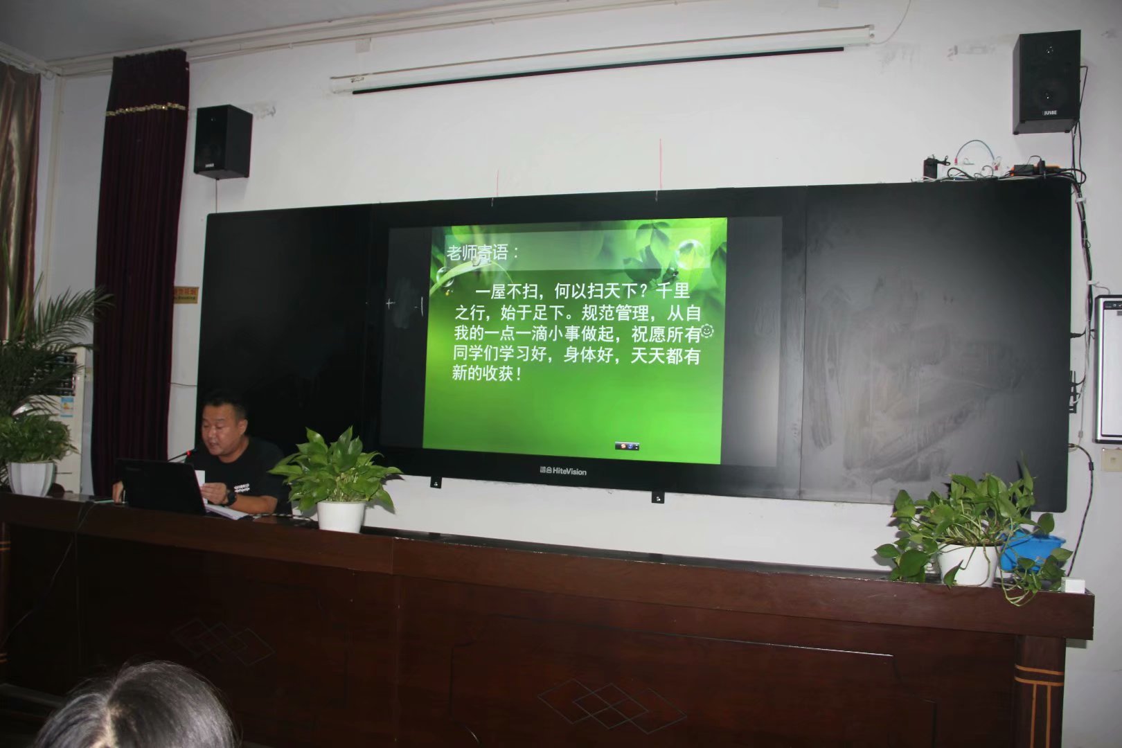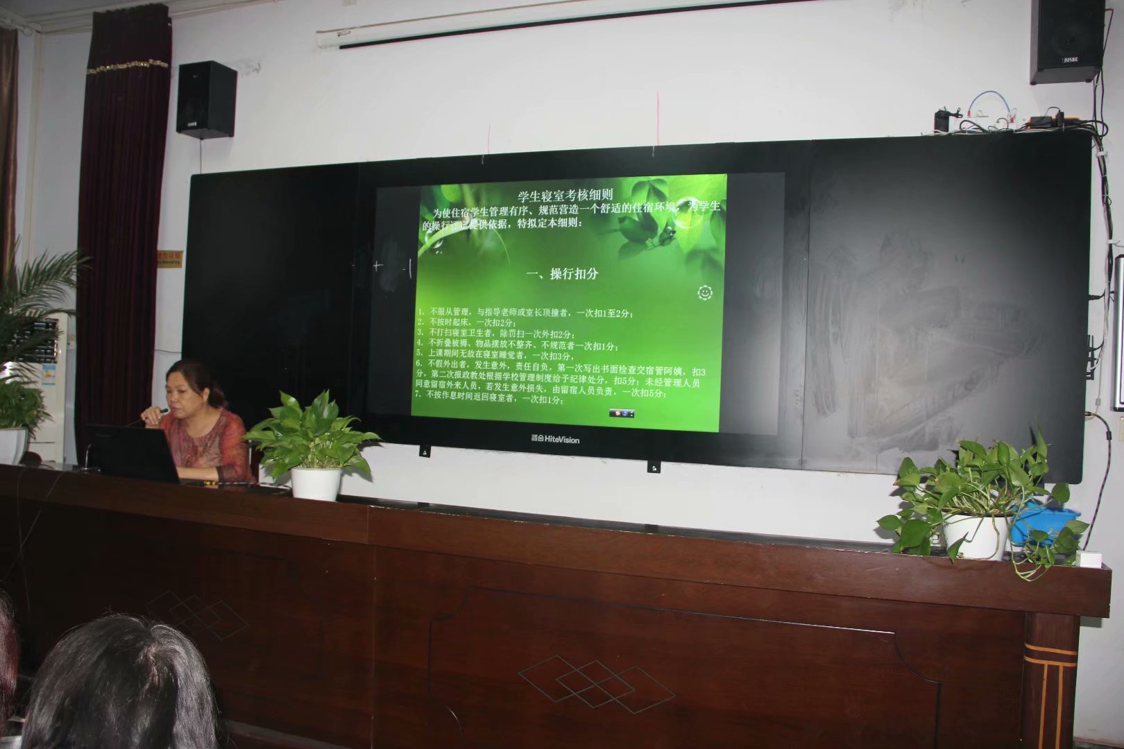 会上,政教处主任王燕琼组织学生学习了《寝室考核细则》《寝室安全制度》《寝室文明公约》等相关制度,让学生学会用制度来约束自己的言行。然后,用图片的方式让学生知晓折叠被子的动作要领和摆放室内生活用品的具体要求,通过检查前后寝室图片对比教孩子们怎样把物品摆放整齐统一;毛巾晾成一条线;被子叠得整齐规范;杯子、牙刷摆成一条线等。最后,针对近期学生寝室内务存在的问题,提出了相应的整改措施。保卫科科长尤艇也对学生强调了用水、用电、出行、饮食等方面的安全教育。
