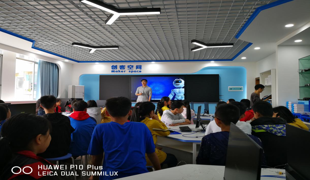2019年10月19日下午,遂宁二中教育集团滨江校区初2021级国创班的孩子们在教学楼六楼的“创客中心”开始了第一堂科技科创课的系统学习。领导高度重视学生的科创素养的培养,滨江校区执行校长潘明英和相关领导亲临现场听课。