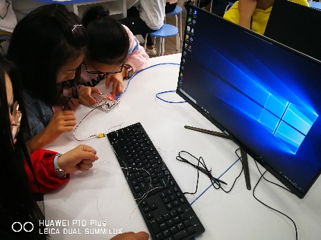 随后郝老师一边介绍一边让孩子们亲手操作了星星灯的转换连接程序,孩子们兴趣高涨,认真聆听老师的讲解,并积极动手操作,遇到不明白的地方踊跃发问,郝老师与曾老师耐心讲解,和孩子们一起完成,当星星灯一闪一闪亮起的时候,教室里响起一片欢呼声。