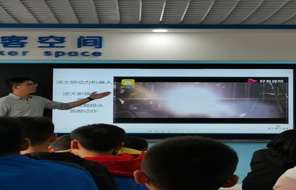 课堂由2016年毕业于中北大学武器系统与工程专业的郝老师主讲。课堂中,郝老师给孩子们详细介绍了现代的机器狗、机器鱼和机器鸟广泛应用于军事、农业、科技研究以及日常生活中的作用;观看了机器人在京东物流中发挥的强大力量,孩子们感叹它为人类节省了大量的物力和人力;欣赏了波士顿动力机器人的逆天操作:倒立、360°翻跟斗以及做跑酷的动作,孩子们感受到了人类的智慧和强大的创造力。