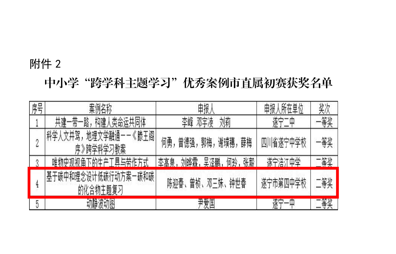 热烈祝贺我校教师在2023年遂宁市中小学“跨学科主题学习”优秀案例征集(市直属初赛)评选活动中喜获二等奖!