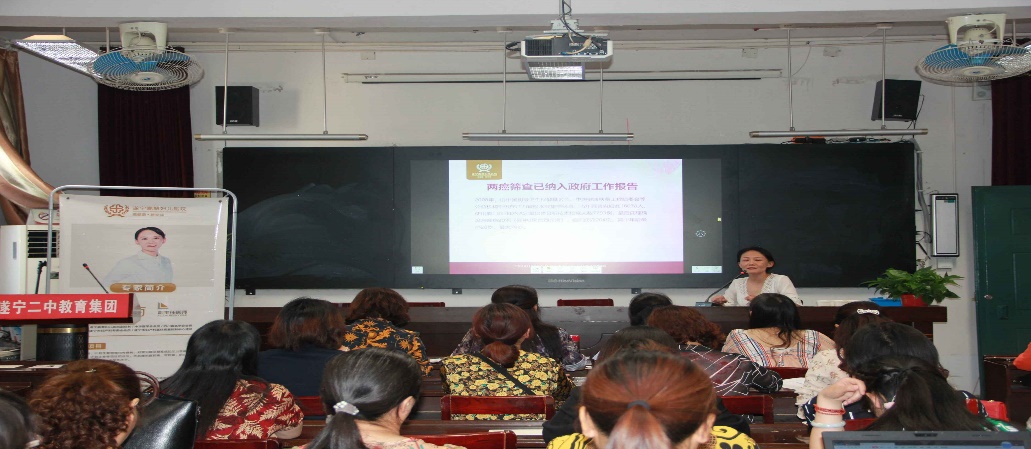 为了关注女性健康,增强自我保健意识,提高预防疾病知识。在市教育工会的支持下,2019年5月23日下午,嘉慧妇儿医院的黄金菊副院长来到滨江校区开展女性健康知识讲座。遂宁二中滨江校区全体女教职工到场聆听。