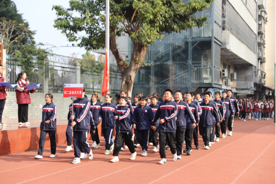 冬日的寒风,吹不散同学们的如火热情;冬日的暖阳,映照着同学们的飒爽英姿。2023 年 11 月 22 日下午 2:30,遂宁四中(二中滨江校区)2023 年冬季运动会暨艺体学院第四届体育艺术节开幕式准时开始。