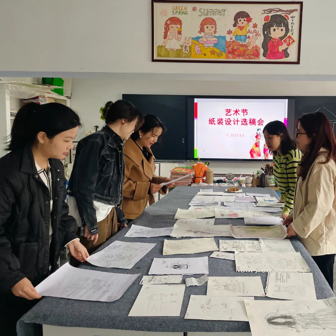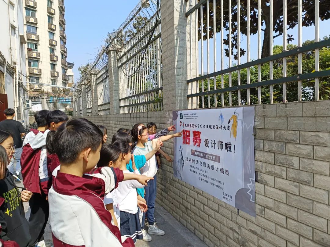 4月10日,艺体学院院长、政教处向昆副主任对入选的14幅作品的设计者发出邀请函。邀请这些同学加入服装设计小组,他们将和老师一起将自己的设计稿变为成品,在2023年“文艺汇演”时装秀中由校模特队着装展示。