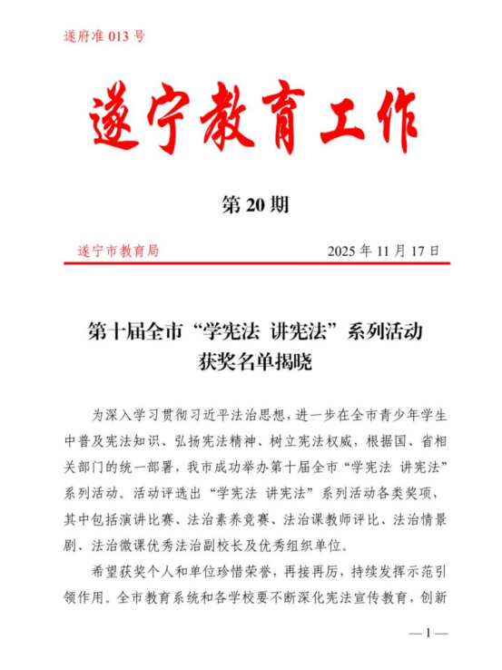 热烈祝贺我校段雅茹、衡薇玲两位同学在遂宁市第十届“学宪法 讲宪法”活动中斩获佳绩!
