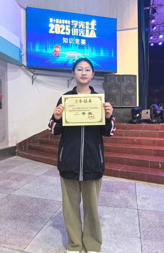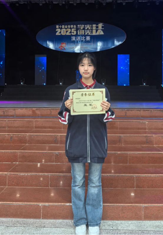 段雅茹同学在2025年遂宁市第十届“学宪法 讲宪法”市级决赛中荣获演讲比赛初中组亚军