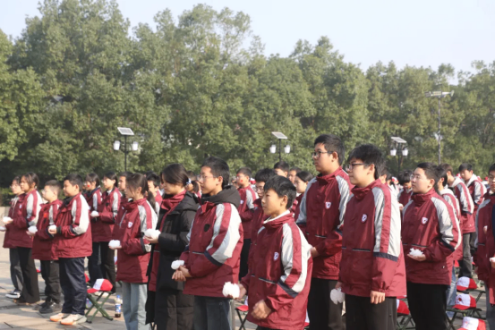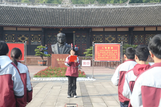 苍松翠柏映初心,杨尚昆旧居的宣誓广场上,气氛庄重而肃穆。同学们身着整齐校服,手持亲自做的洁白鲜花,列队肃立在杨尚昆同志铜像前,目光坚定而崇敬。