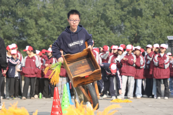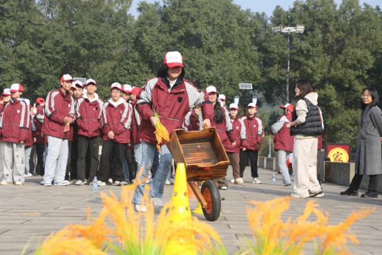 参观结束后,“趣味运水稻”游戏热闹开场!同学们分组接力,小心翼翼地用特制工具运送“水稻”(模拟道具),既要保证“水稻”不落地,又要比拼速度与协作。“S”路线上,大家弯腰疾行、默契配合,时而为队友加油呐喊,时而为顺利传递欢呼雀跃。这场充满趣味的游戏,不仅让同学们体验了农耕劳作的不易,更在协作中感受到团队力量的珍贵。
