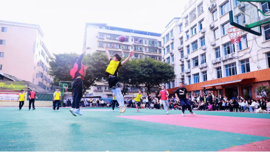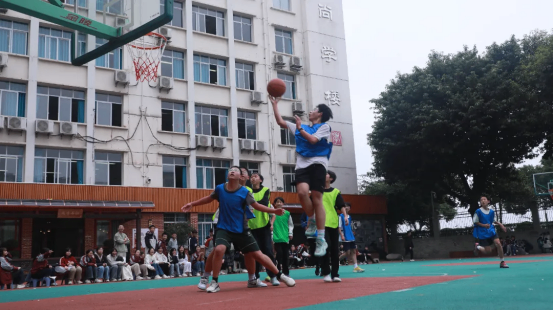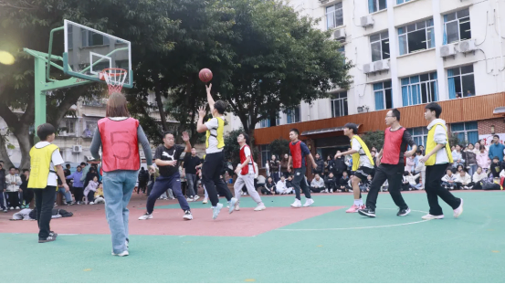 老师们褪去讲台的沉稳,身着球衣融入赛场,瞬间点燃全场热情,引发阵阵尖叫。学生球员们毫不怯场、敢打敢拼,凭借年轻的爆发力频频发起猛烈冲击;老师们则凭借丰富的赛场经验稳扎稳打,一记记精准的中距离跳投、巧妙的传球配合,让学生们纷纷起立鼓掌叫好,赛场氛围推向顶峰。