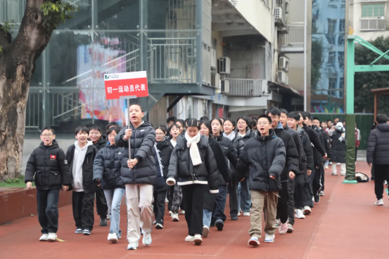 上午8时整,各班级方阵已在指定位置集结完毕,伴随着激昂的运动员进行曲,入场式正式拉开帷幕。各方阵以校门口跑道弧顶为起点,迈着矫健的步伐,依次通过主席台。
