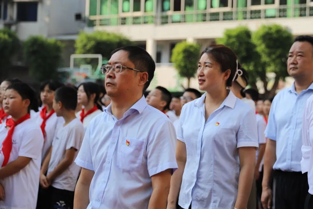 伴随着雄壮的国歌声,五星红旗冉冉升起,高高飘扬在学校上空。