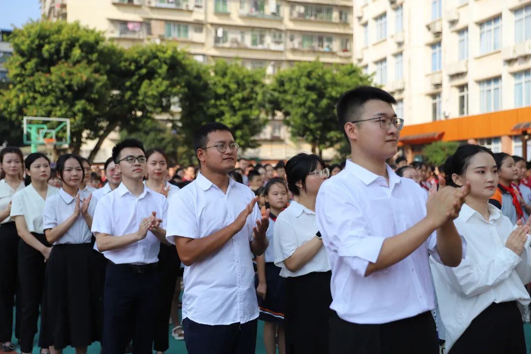 全校师生通过观看一个短片认识了20名新教师,黄莉老师作为新教师代表发言。她表示,教书育人是教师的天职;为人师表是教师的本分;终身学习、追求卓越是教师的根本;尽心尽责、服务学生是教师的使命。希望在老师们的陪伴下,四中学子可以收获更好的自己。
